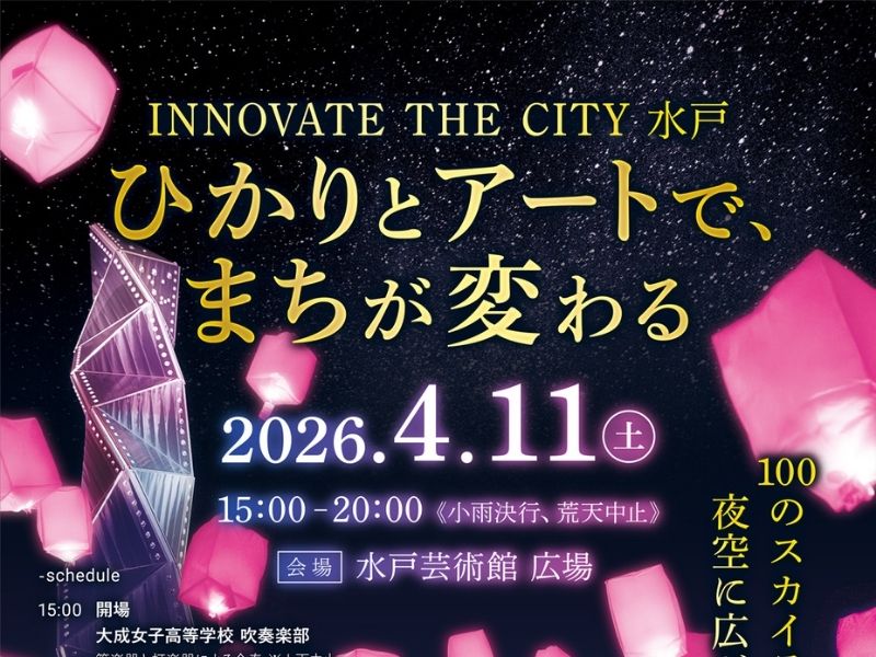 水戸芸術館の広場が、ひかりとアートに包まれる一日。音楽、書道、アート、そしてスカ...詳しく見る