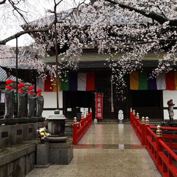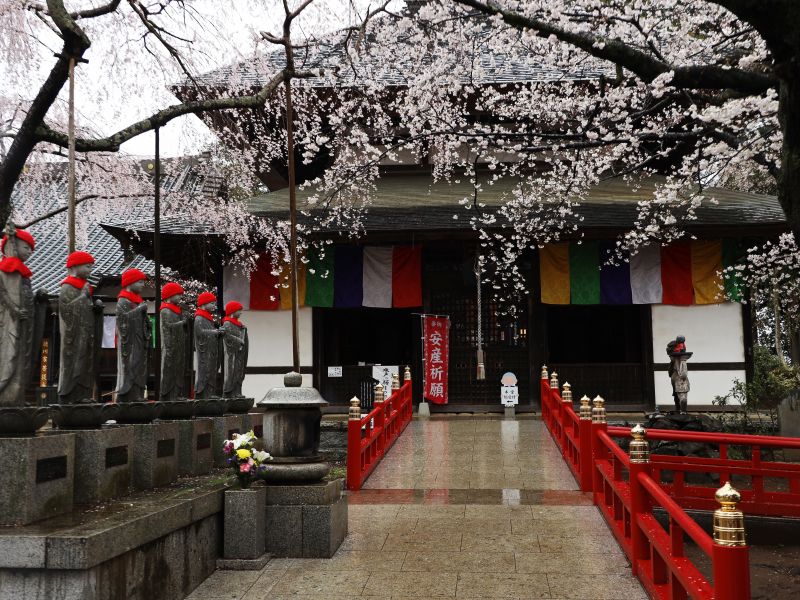 桜雨降る六地蔵
