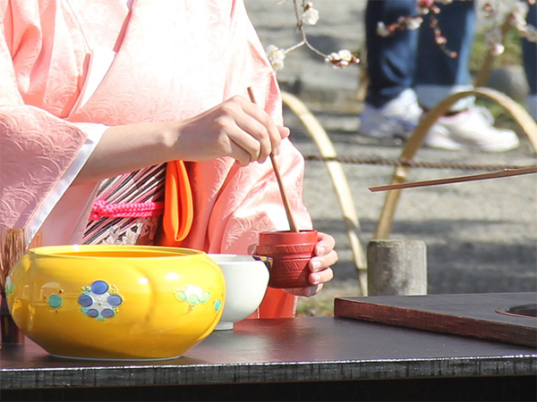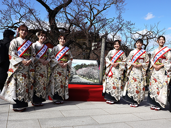 梅まつりの開幕に合わせ、黄門さま御一行・水戸の梅大使・みとちゃん・茨城県警察音楽隊が来場者をお出迎えします。